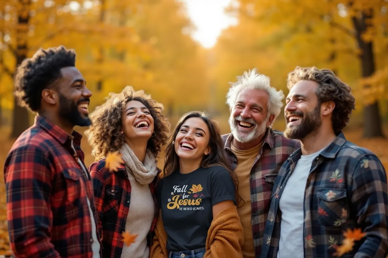 Fall for Jesus He Never Leaves Christian T-Shirt - Faith Autumn Tee